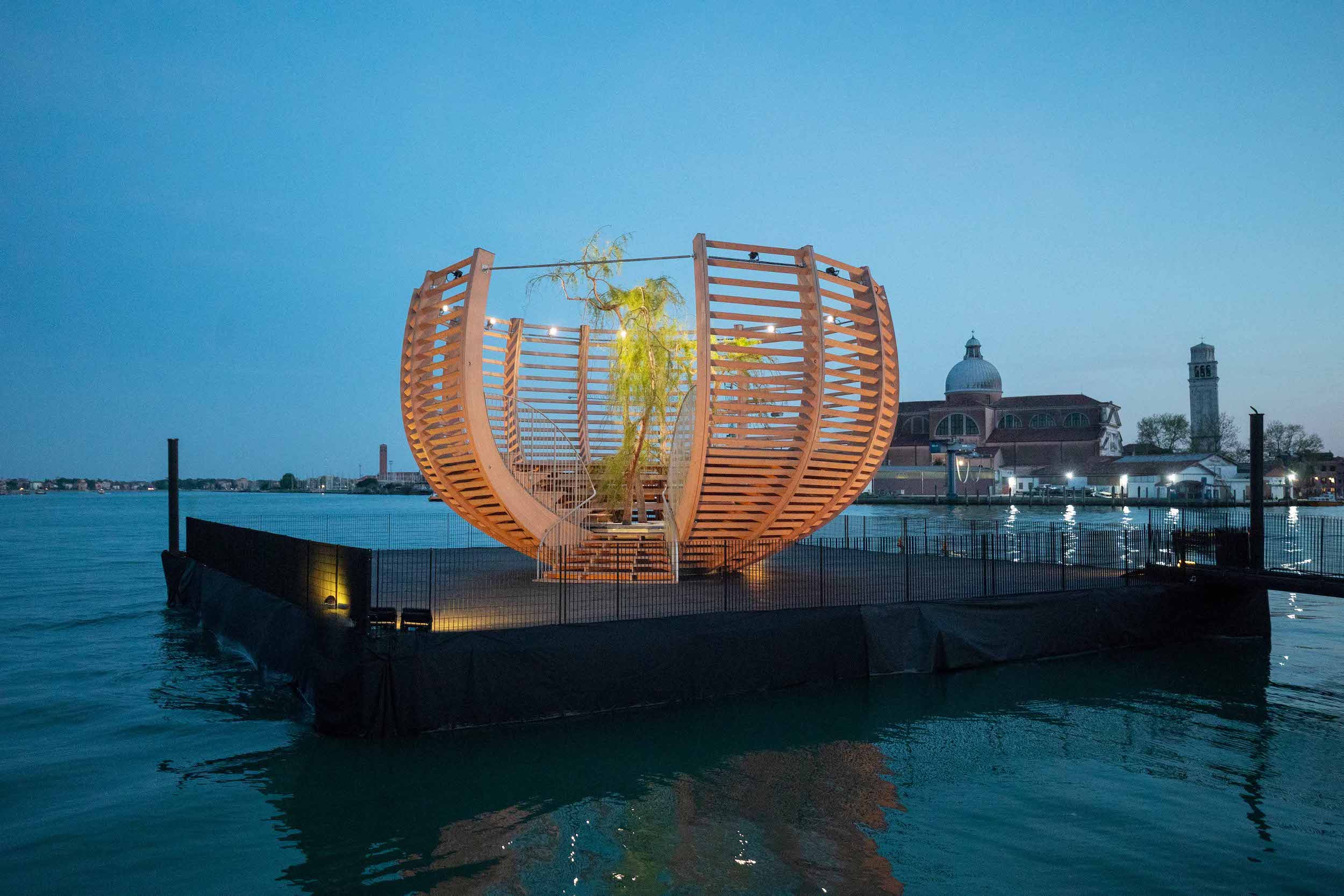 Parallel zur Eröffnung der 60. Internationalen Kunstausstellung von Venedig soll «Arena for a Tree» des Basler Künstlers und Kulturvermittlers Klaus Littmann «eine wichtige Botschaft über den Klimawandel und die Nachhaltigkeit vermitteln», wie die Kulturstiftung Basel H.Geiger (KBH.G) schreibt, die zentral an der Realisierung des Vorhabens beteiligt ist. Vor dem Hintergrund des historischen Arsenale Nord erhebe sich die temporäre Installation «wie eine Arche mit einem einzigen Protagonisten in ihrer Mitte: dem Baum». Aus der Ferne sehe die «Arena for a Tree» wie eine keimende Samenkapsel aus. Aus der Nähe betrachtet, sei sie gleichzeitig Skulptur, Architektur und Podium". Die Tribüne bietet drei Reihen von Sitzplätzen und kann 50 Personen gleichzeitig aufnehmen.