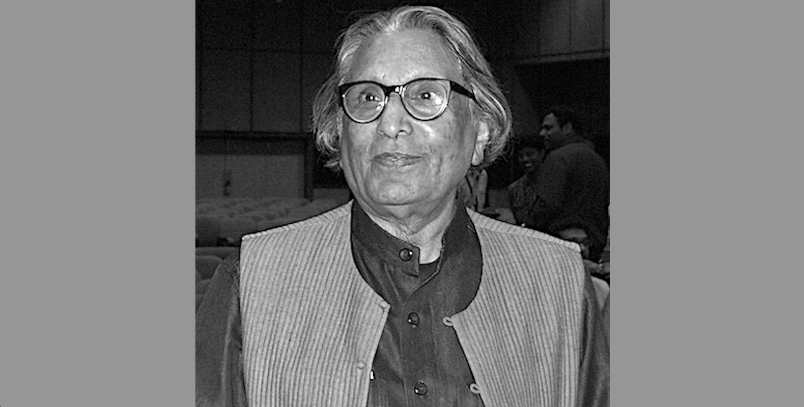 Bild: Balkrishna Doshi, 2013 – Foto: Sanyam Bahga, https://commons.wikimedia.org/wiki/User:Sanyambahga – Lizenz: https://creativecommons.org/licenses/by-sa/3.0/deed.en – Datei: https://commons.wikimedia.org/wiki/File:Balkrishna_Doshi.JPG (Ausschnitt)