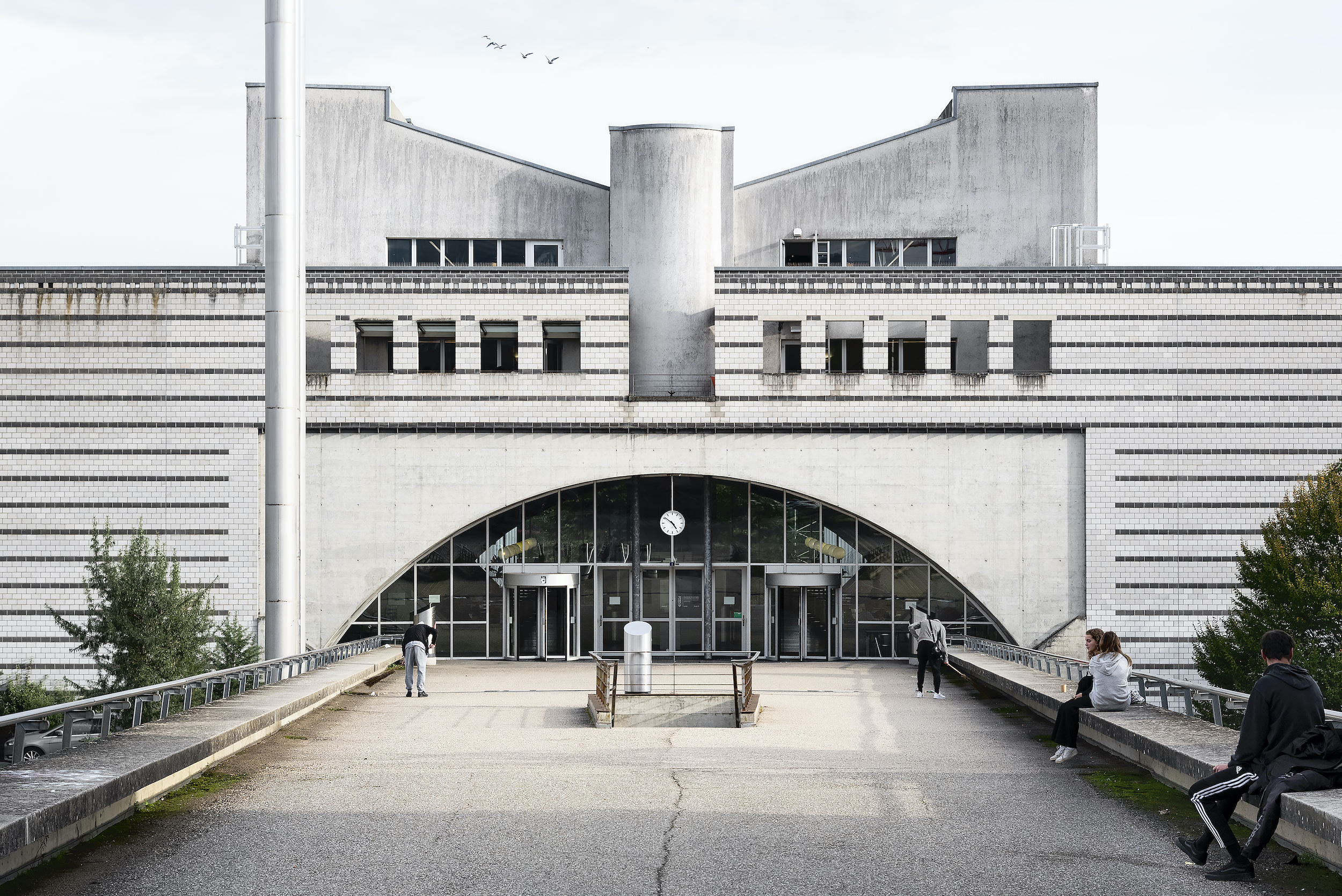 Bild oben: Gymnase cantonal, Nyon (VD), 1984-1988, Vincent Mangeat – Foto: © Noah Santer, Schweizer Heimatschutz