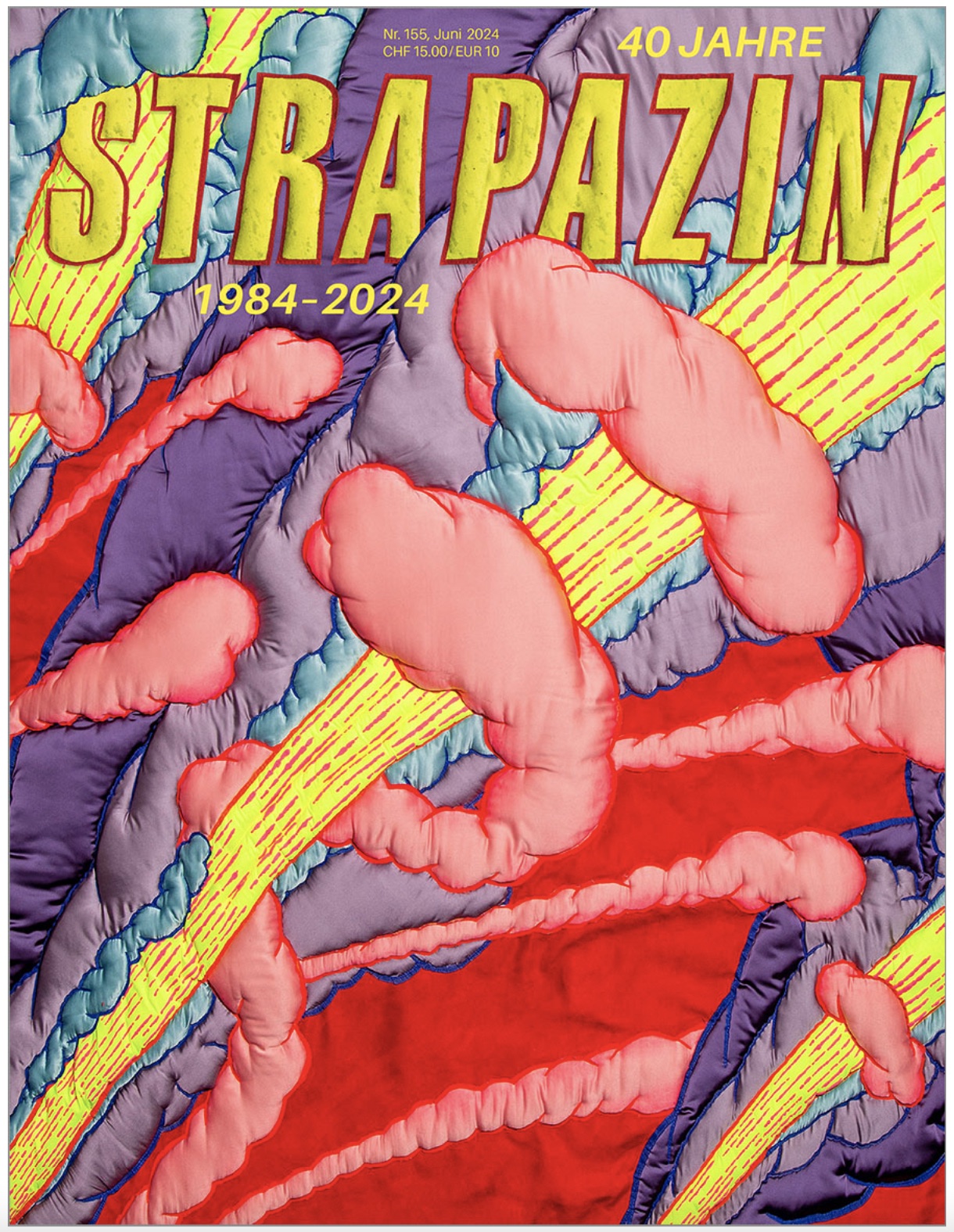 Zur Feier des 40-Jahr-Jubiläums machte sich «STRAPAZIN» gleich selber ein Geschenk, indem alle 22 «STRAPAZIN»-Herausgeber*innen ihre*n Lieblingsautor*in einladen durften, eine Seite zu gestalten. Daraus ist ein bunter Strauss aus 64 Beiträgen geworden – von Veteran*innen der Nummer 1 bis zu neuen Talenten, die noch nie im «STRAPAZIN» veröffentlicht haben. Am Samstag, 29. Juni 2024, feiert «STRAPAZIN» ab 14 Uhr im El Lokal in Zürich mit Live-Zeichnen, Comic-Lesung, Konzerten und DJs. Das aktuelle Heft Nummer 155 wurde von Corinne Odermatt, Lika Nüssli und David Basler redaktionell betreut.