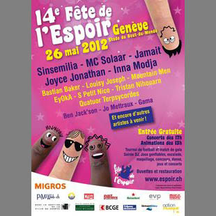 Option Musique présente: La 14ème Fête de l'Espoir le samedi 26 mai 2012 au Stade du Bout-du-Monde à Genève.