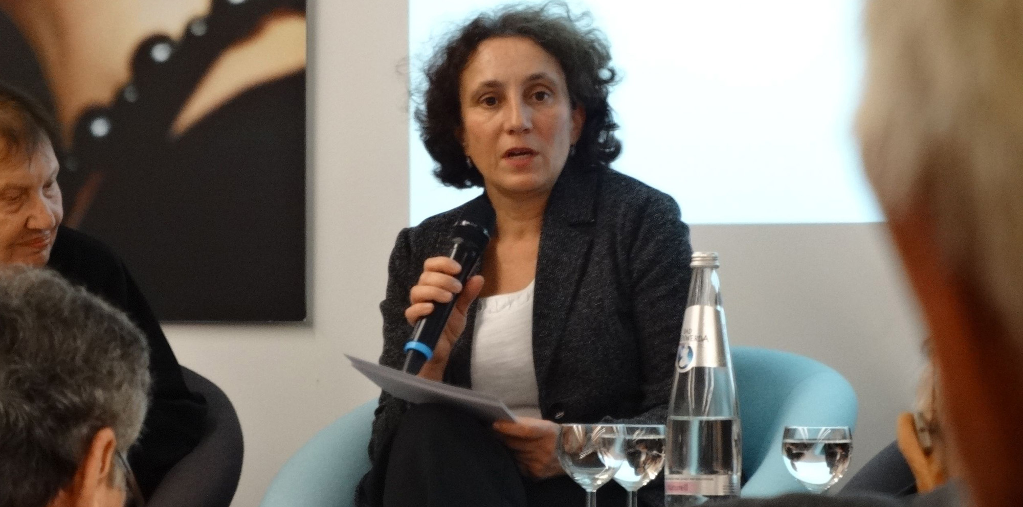 Bild: Journalistin Gemma Pörzgen, Gründungsmitglied von Reporter ohne Grenzen Deutschland, 2014 – Foto: Assenmacher (Ausschnitt) – Lizenz: https://creativecommons.org/licenses/by-sa/4.0/deed.en – Datei: https://commons.wikimedia.org/wiki/File:Berlin-Kreuzberg_Stiftung_EVZ_Gemma_Pörzgen.JPG