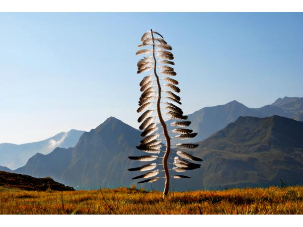 Bild: Das Federspiel von Kari Joller auf dem Bristen. Kari Joller ist Träger des SAC-Kulturpreises 2010 – Foto: zVg (zur Vergrösserung anklickbar)
