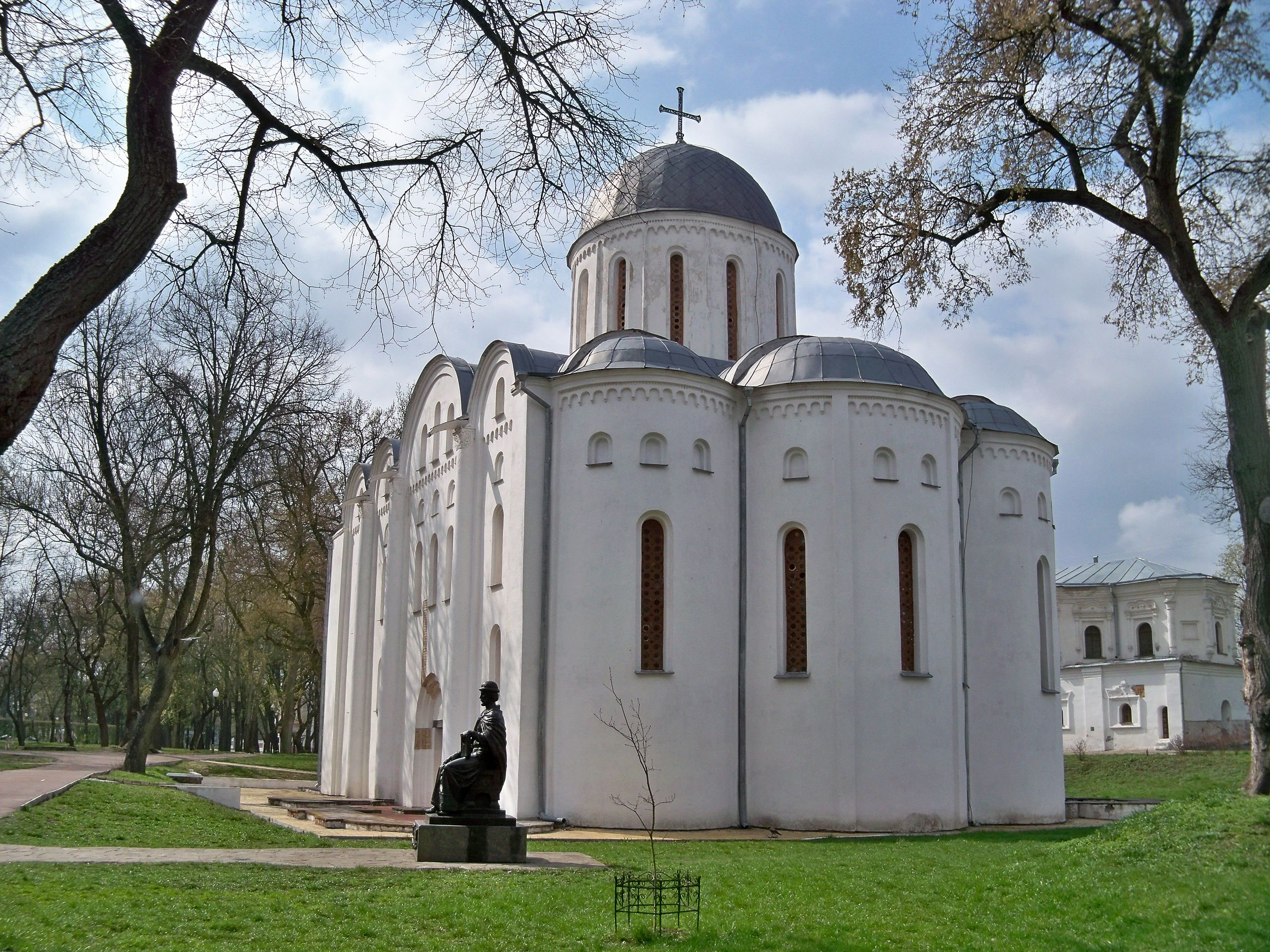 Bild: Historisches Zentrum von Tschernihiw, 9. bis 13. Jahrhundert – Foto: Neovitaha777, 2014 – Lizenz: https://creativecommons.org/licenses/by-sa/4.0/deed.en – Datei: https://commons.wikimedia.org/wiki/File:Чернігів.Собор_Бориса_й_Гліба.JPG