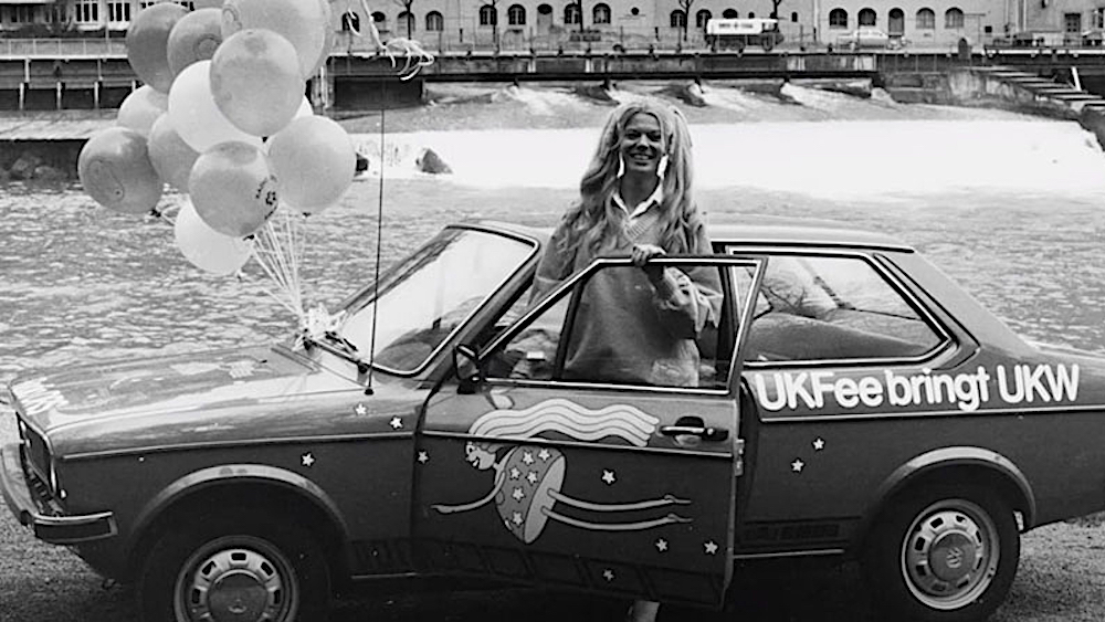 Bild: Schauspielerin Birgit Steinegger 1978 für die SRG als «UKFee» unterwegs – Foto: © https://www.srgssr.ch/de/news-medien/dossiers/abloesung-ukw/geschichte