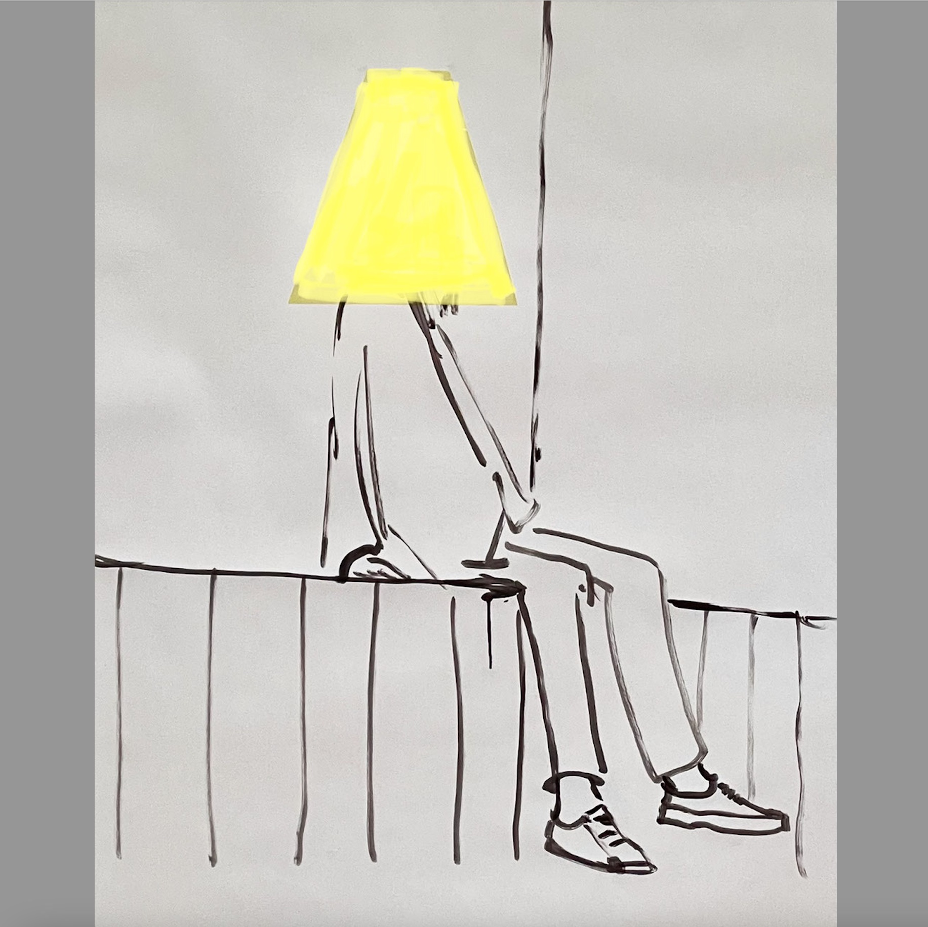 Bild: Skizze zum Motiv «Lesende mit Lampenkopf», © Zilla Leutenegger, 2022, https://www.zilla.ch/index.html