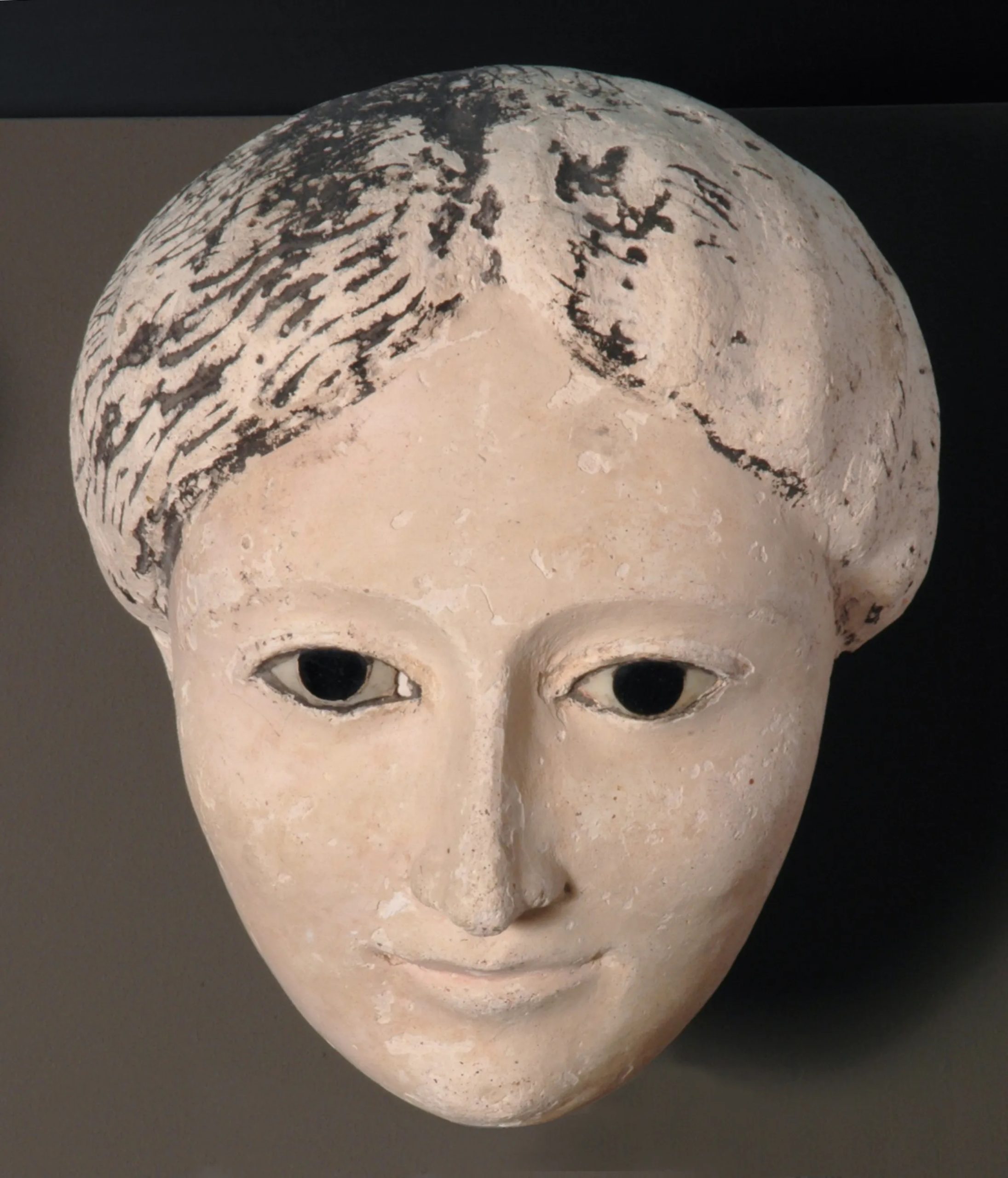 Image: Masque funéraire de jeune femme. Époque ptolémaïque, Empire romain. Stuc, peinture noire, pâte de verre, 22 x 17,5 x 20,5 cm. Achat, 1927; inv. 12484 – © Musée d’art et d’histoire de Genève, photo: B. Jacot-Descombes