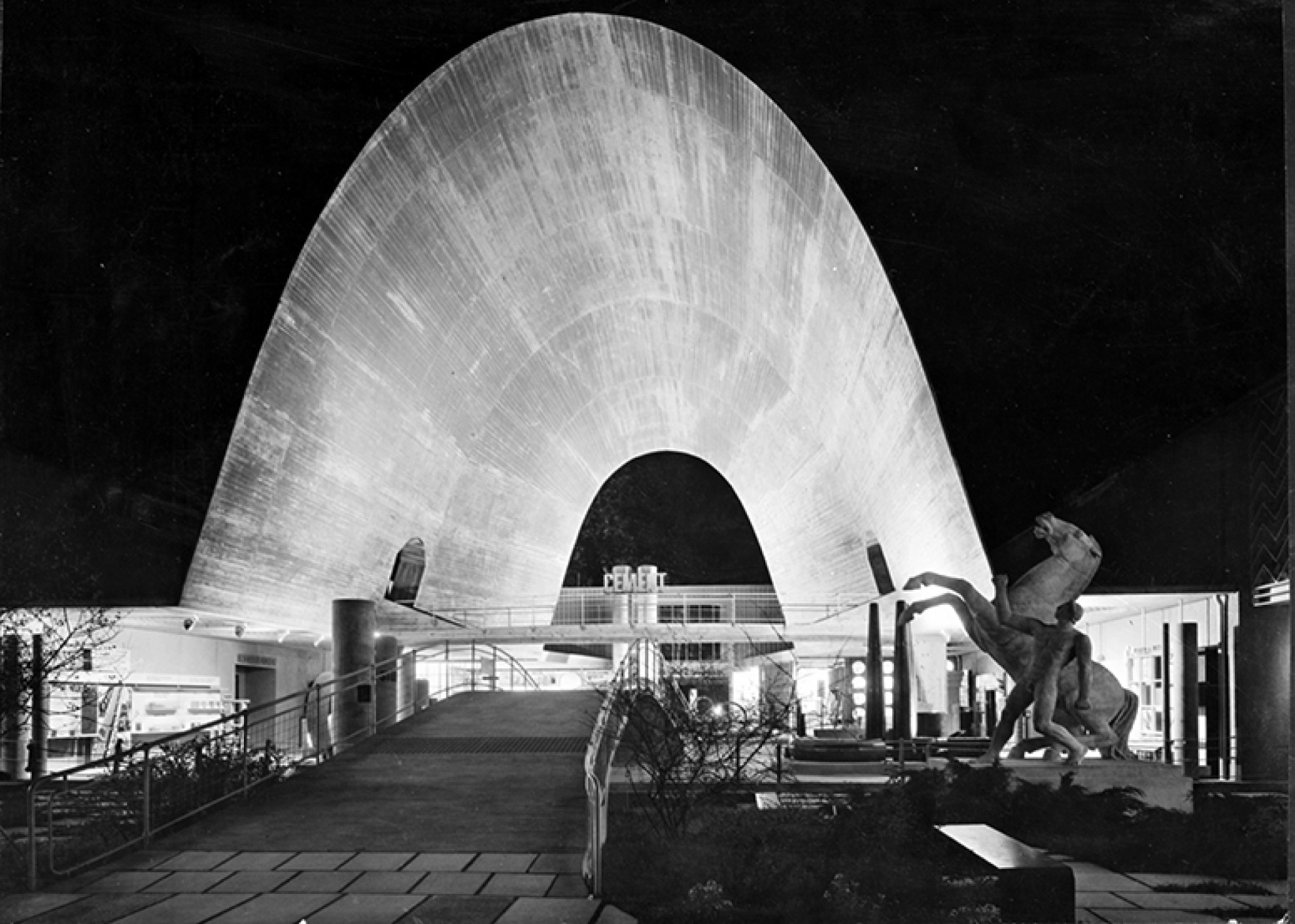 Bild oben: Zementhalle von Hans Leuzinger (Architekt) und Robert Maillart auf der Landesausstellung von 1939 in Zürich, Courtesy ETH-Bibliothek Zürich, Bildarchiv