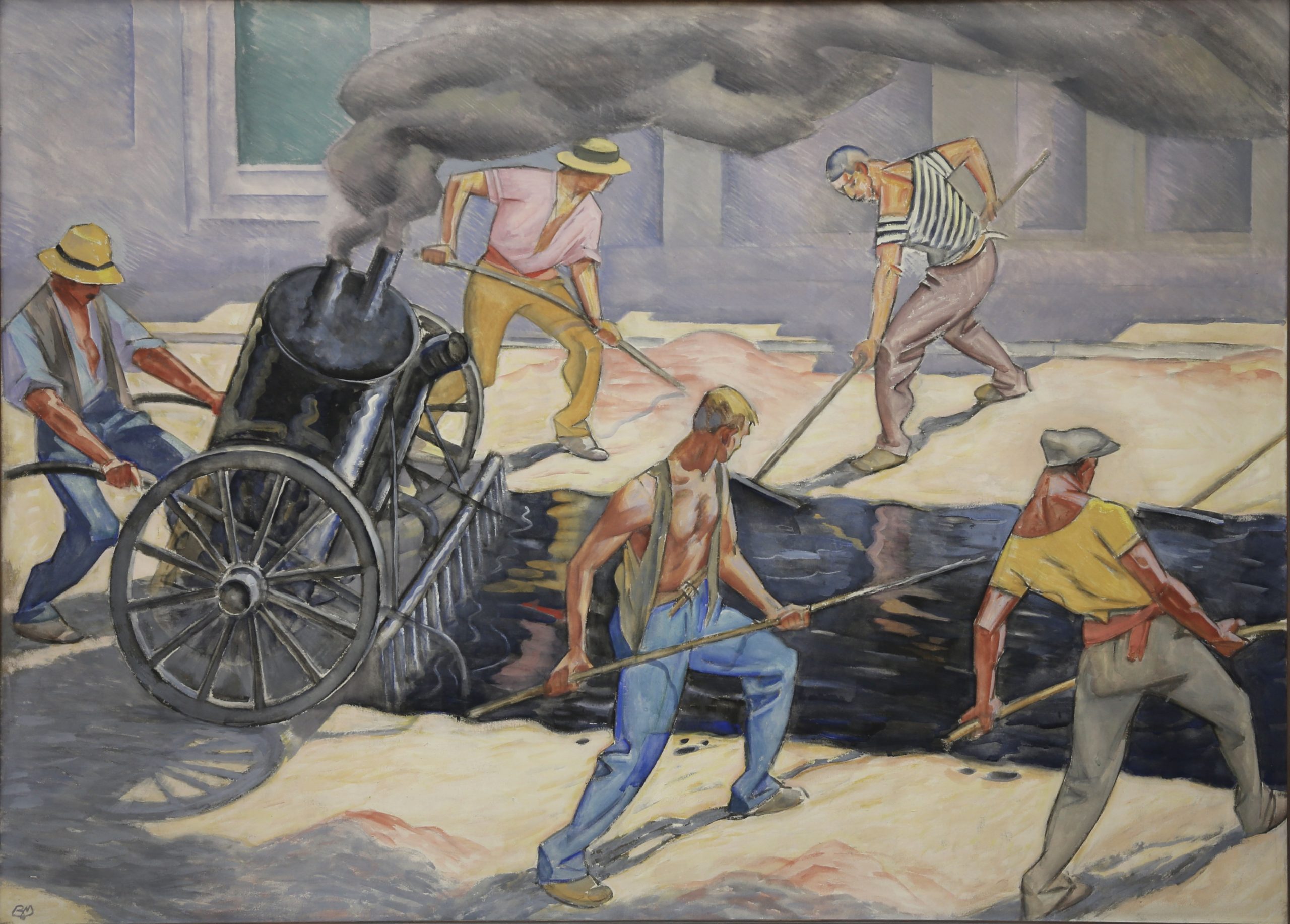 Bild: Teerarbeiter von Burkhard Mangold aus dem Jahre 1936. Im Kunstmuseum Basel – gemeinfrei – Datei: https://commons.wikimedia.org/wiki/File:Teerarbeiter_1936,_Burkhard_Mangold.jpg?uselang=de