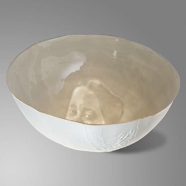 Image: © Line Dutoit Choffet, Femme IV, bol-lithophanie, porcelaine et cellulose, ø 35 x 17 cm, cuisson à 1260°C, http://linec.ch/