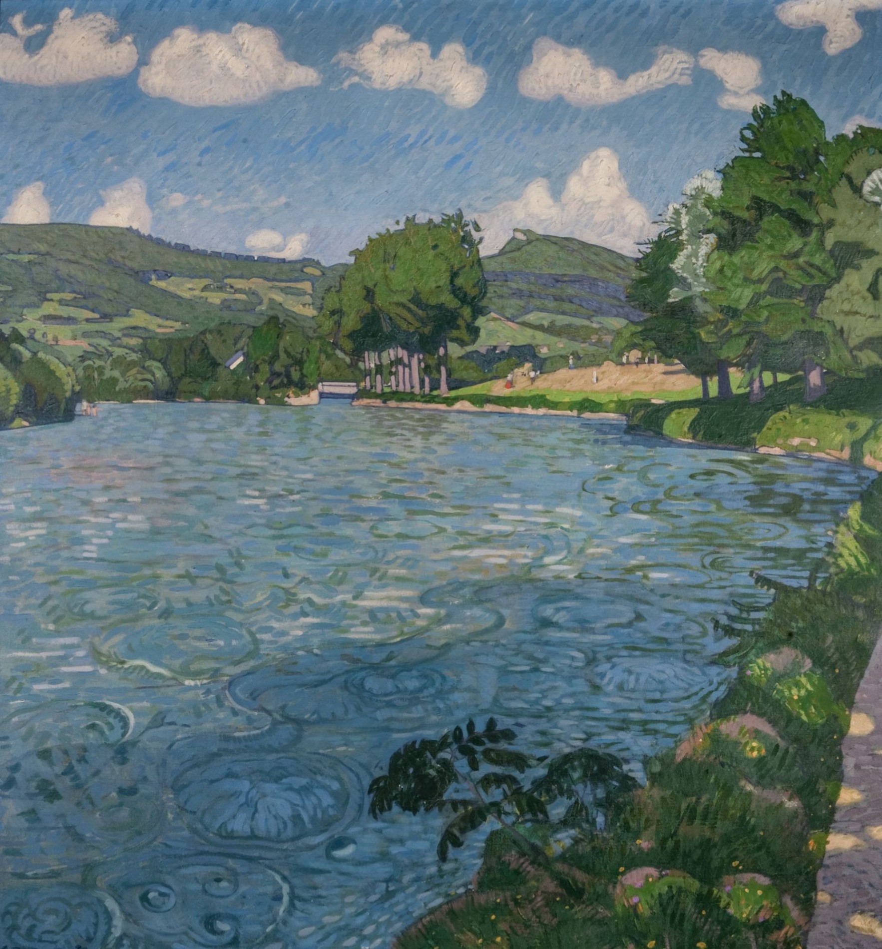 Bild: Otto Wyler, Flusslandschaft, 1909, Öl auf Leinwand, 130×120 cm, Kunstsammlung Stadt Aarau © Nachlass Otto Wyler (Bild zur Vergrösserung anklicken)