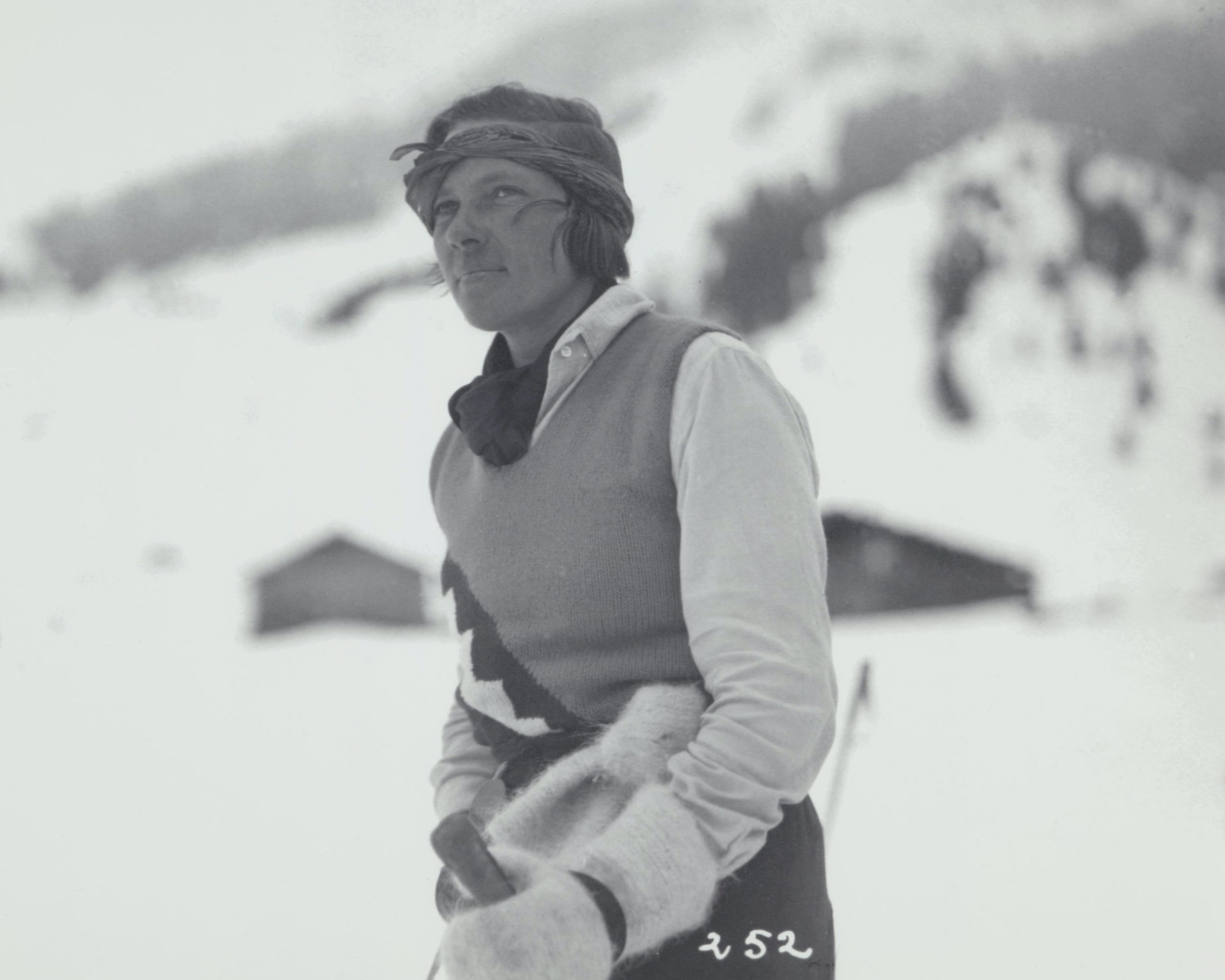 Image: Anonyme, Ella Maillart à un concours de ski à Mürren, vers 1931. Épreuve sur papier au gélatino-bromure d’argent, inv. TEX600137 © Succession Ella Maillart et Photo Elysée, Lausanne