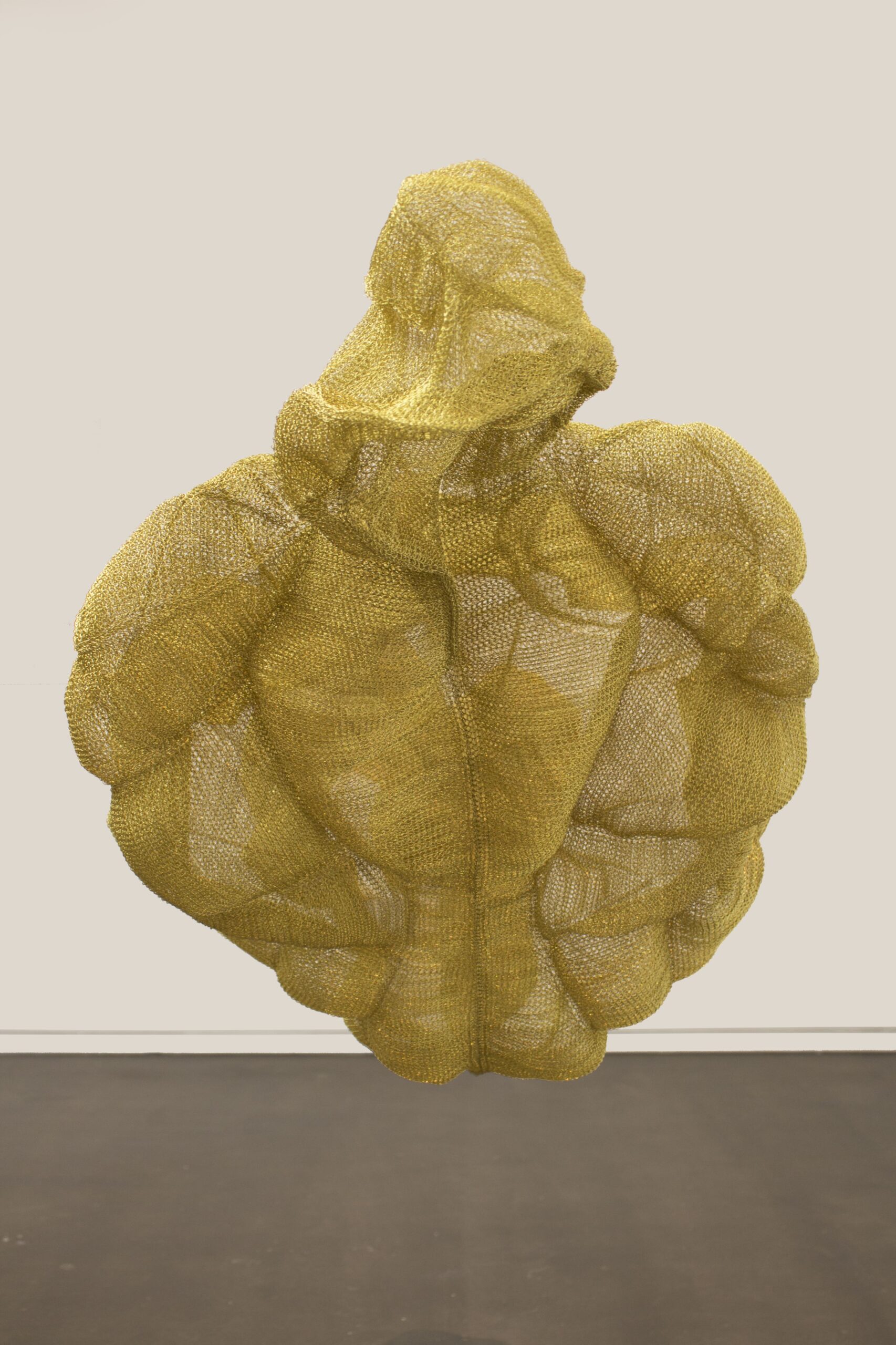Tentatives d’existence et de résistance, notamment contre les diktats sur l’esthétique du corps, les pièces de l’artiste lausannoise sont autant des couches protectrices pour le corps que des artifices ou encore des reflets de l’esprit qui s’y cache. En fil de laiton ou en sac poubelle crocheté, ses œuvres délicates et aériennes flottent dans l’espace, donnant une impression de légèreté.