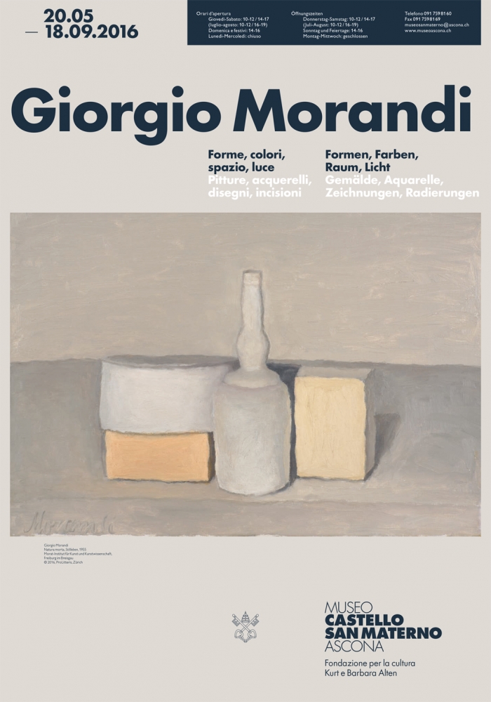 Forme, colori, spazio, luce – Giorgio Morandi – Pitture, acquerelli, disegni, incisioni è la prima mostra temporanea che si inaugura negli spazi del Museo Castello San Materno di Ascona, nata da un progetto della Fondazione per la cultura Kurt e Barbara Alten di Soletta, in collaborazione con il Morat-Institut für Kunst und Kunstwissenschaft di Freiburg che, nella persona del suo fondatore Franz Armin Morat, collezionista e profondo conoscitore dell’opera di Morandi, ha scelto per Ascona, e generosamente concesso in prestito, 28 delle 30 opere del maestro italiano.