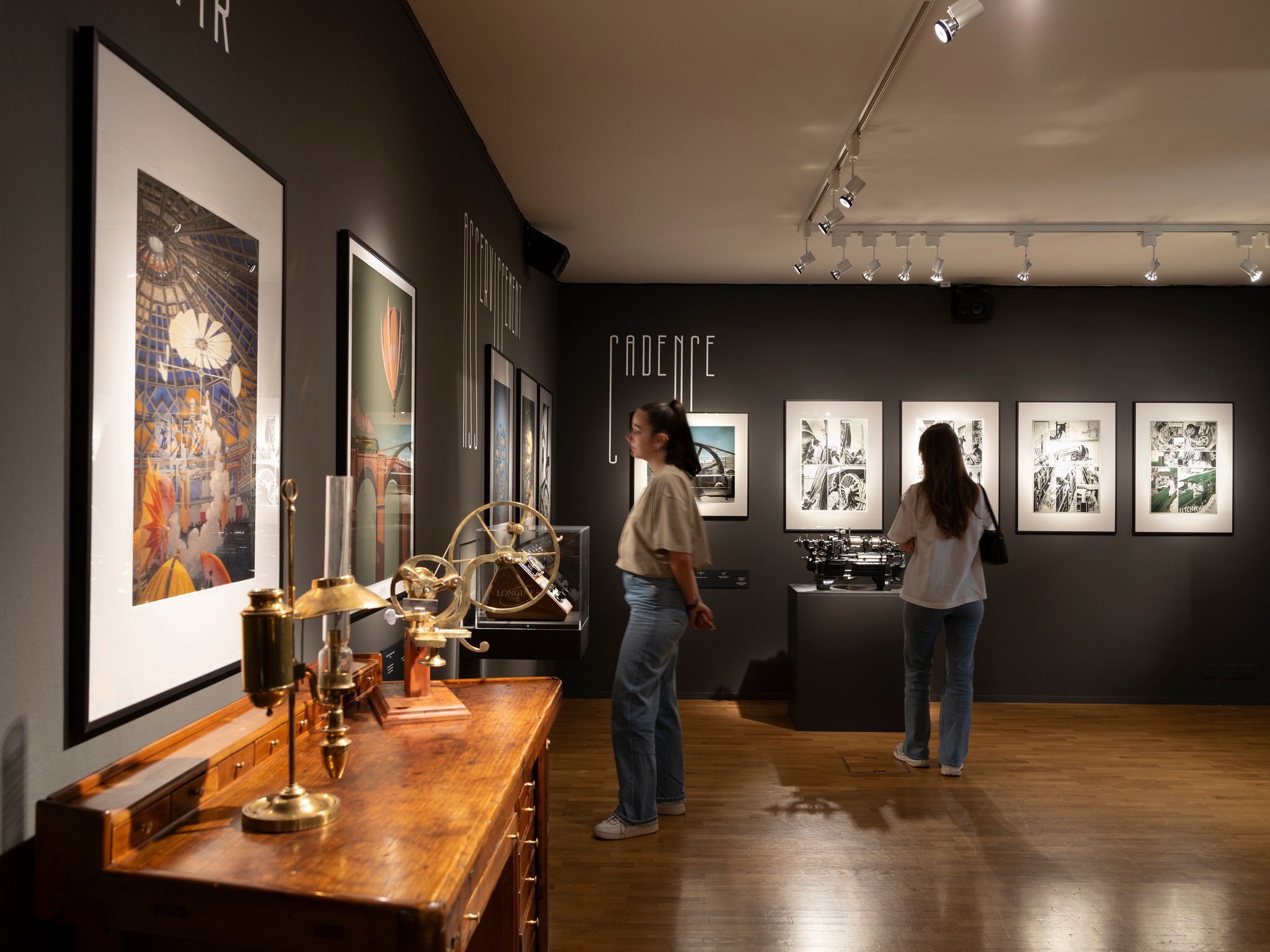 Les dessins originaux de l’artiste dialoguent avec des pièces réunies par l’horloger Denis Flageollet et l’univers sonore conçu par le compositeur Bruno Letort.