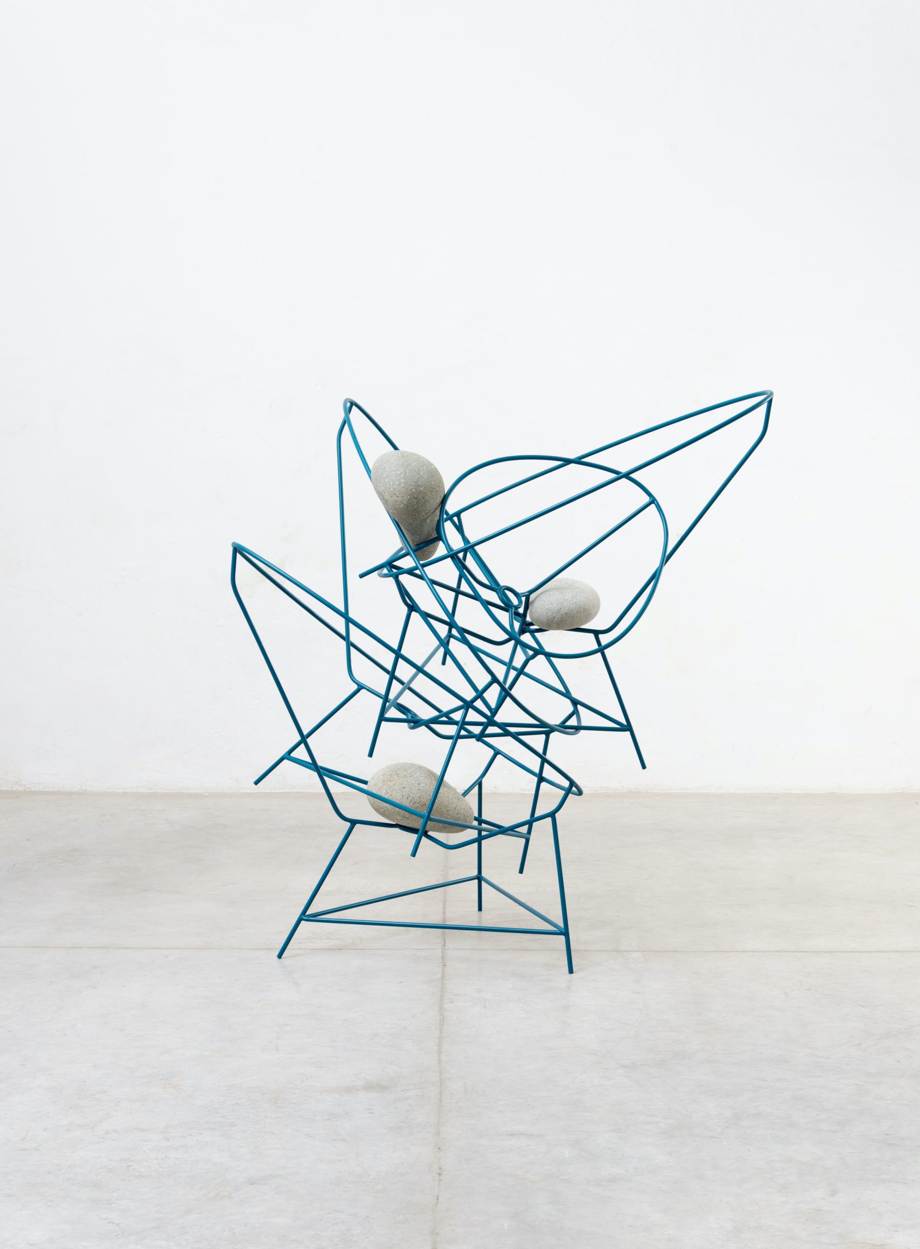 Bild oben: Jose Dávila, Acapulco chair stack, 2021, Metall, Epoxidfarbe und Rundsteine, 148.5 x 140 x 110.5 cm – Foto: Agustín Arce, Courtesy der Künstler und Sean Kelly Gallery, New York