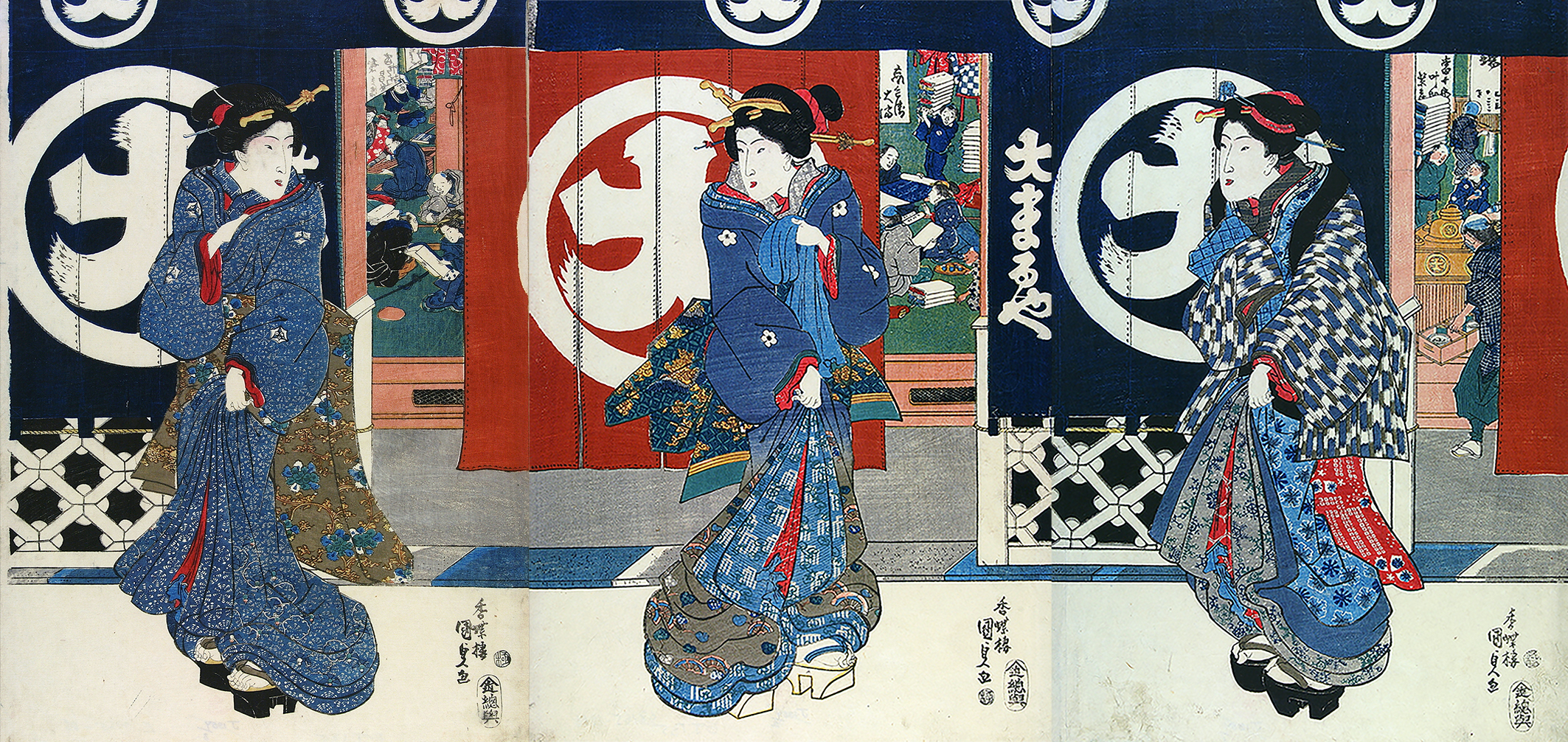 Bild oben: Frauen vor dem Kimono-Geschäft Daimaruya, Utagawa Kunisada (1786–1864), Edo (Tokyo), 1840–1845 © Victoria and Albert Museum, London
