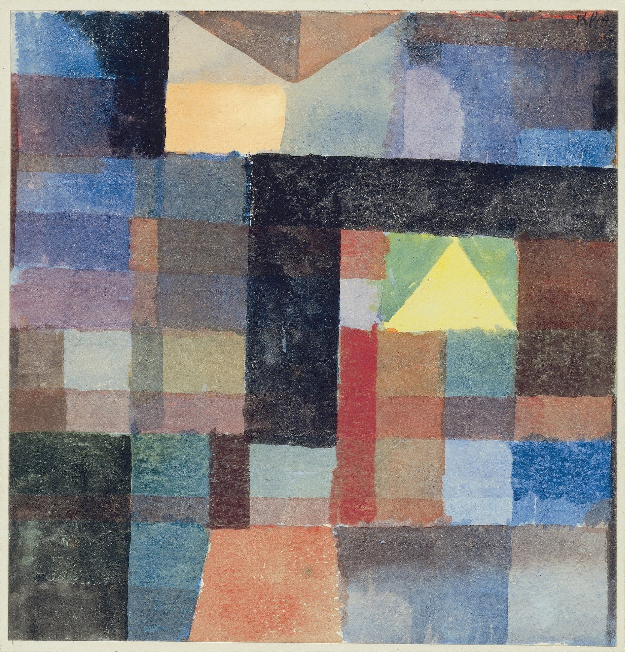 Bild oben: Paul Klee, Raumarchitektur mit der gelben Pyramide / kalt – warm, 1915, Aquarell auf Papier auf Karton, 15.4 x 14.8 cm – Kunsthaus Zug, Stiftung Sammlung Kamm – Foto: Jorit Aust Photography