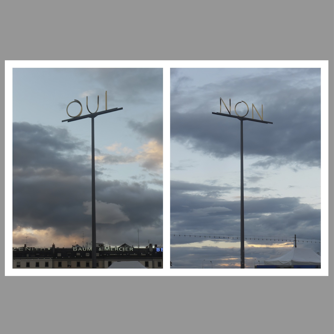 Image: Ambigramme OUI NON sculpture anamorphosique de Markus Raetz, Genève, 2002 – Foto: Fjmustak, https://commons.wikimedia.org/wiki/User:Fjmustak?uselang=de – Public domain – Datei: https://commons.wikimedia.org/wiki/File:Ambigramme_OUI_NON_sculpture_anamorphosique_de_Markus_Raetz_