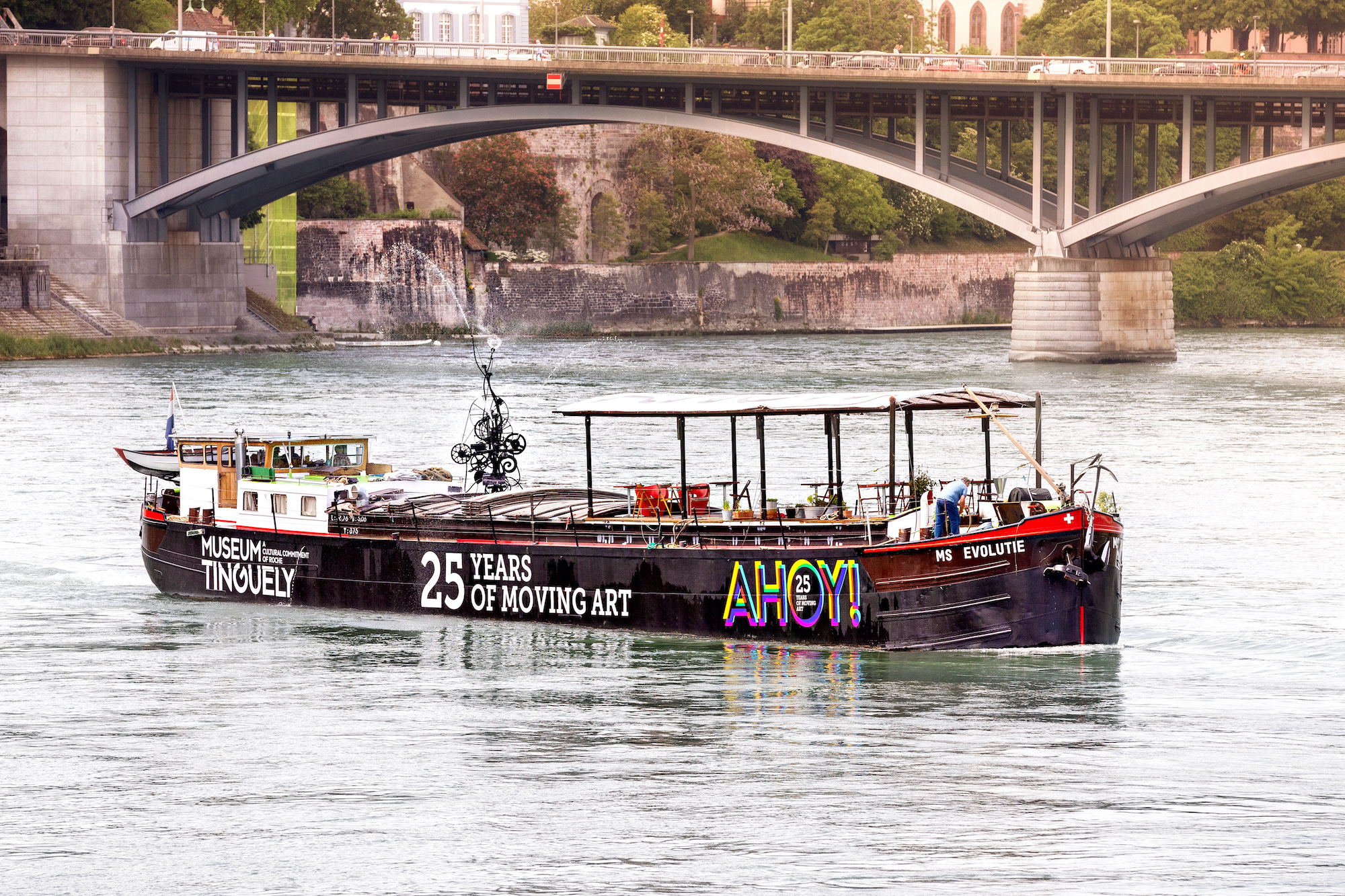 Zu seinem 25. Jahr-Jubiläum lichtet das Museum Tinguely Basel die Anker und begibt sich im Sommer 2021 auf eine besondere Schiffsreise: Unter dem Titel «Museum Tinguely AHOY!» macht sich das Museum auf dem umgebauten Frachtschiff MS Evolutie auf den Weg und bringt die Kunst Jean Tinguelys (1925–1991), der mit seinen beweglichen Skulpturen bekannt wurde, zu den Menschen. Die Route führt entlang wichtiger Orte und Wirkungsstätten aus Tinguelys Leben und Karriere von Paris über Antwerpen und Amsterdam durch das Ruhrgebiet rheinaufwärts bis nach Basel.