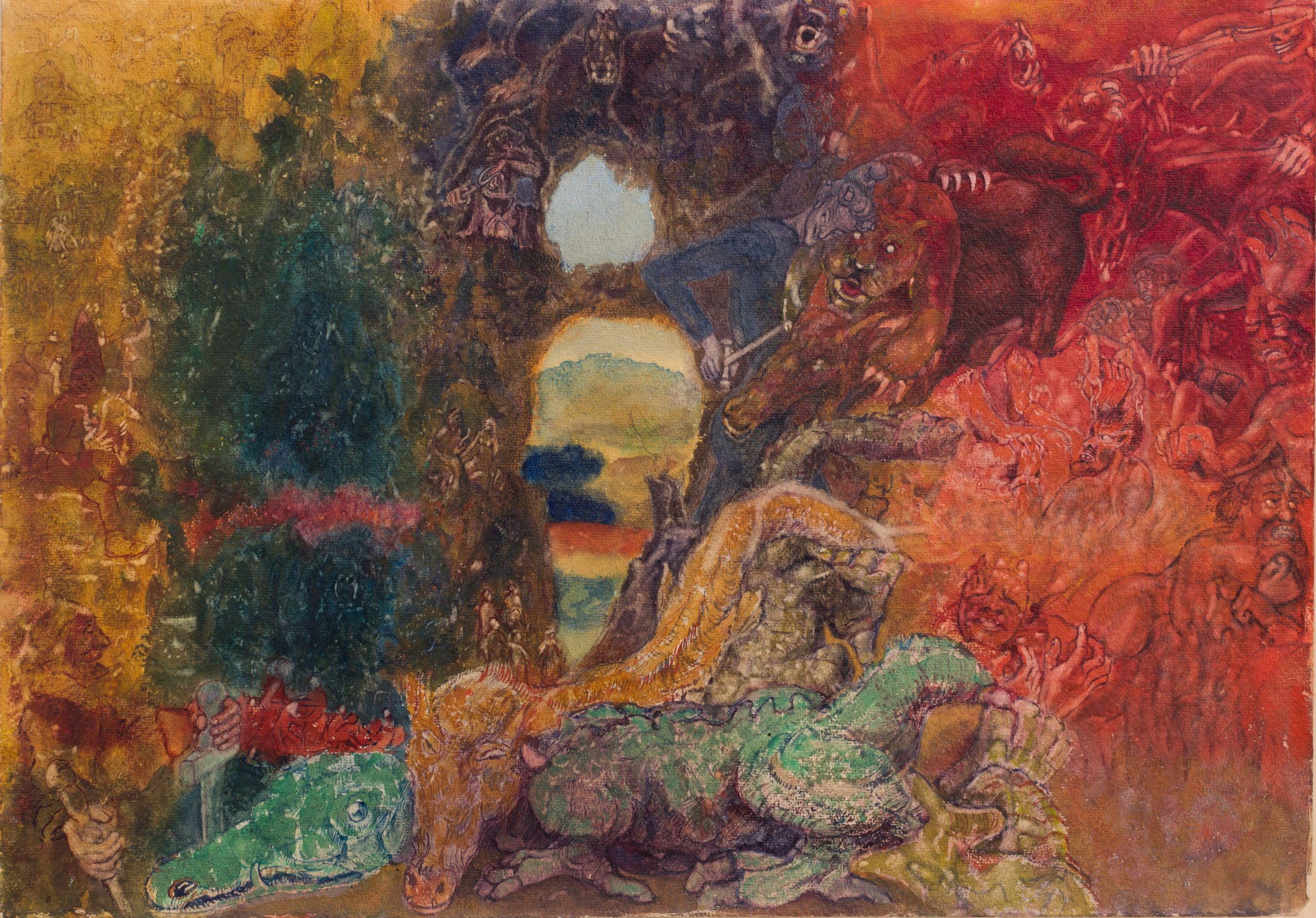 Bild: Paul Fröhlich (1901–1939), Unterwelt, 1934, Öl und Tempera auf Leinwand, 23.8 x 27.5 cm – Foto: Gunnar Meier, Nachlass Sammlung Paul Fröhlich / Collection Glarner Kunstverein