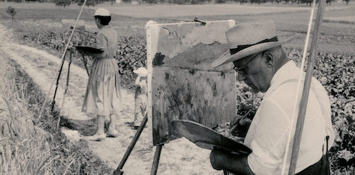 Fotografie: Lotti Fellner, Tom Fellner (als Kind) und Otto Wyler beim Malen, 1968