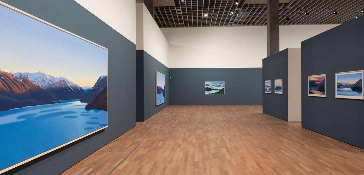 Auch wenn die lebhafte Farbgebung und die genau festgelegten Formen, die für sein Werk typisch sind, beibehalten werden, weisen die im MASI ausgestellten grossen Ölgemälde keine Grenzen mehr auf und vollziehen damit einen Bruch mit der früheren malerischen Welt des Künstlers – mit ihren fast schon irrealen und mit mise-en-abyme-Elementen versehenen Architekturen – um die Leinwand zu überschreiten und den Betrachterinnen und Betrachtern ein immersives Ausstellungserlebnis anzubieten. In diesem Sinn sind Hubers Arbeiten eine Hommage an die Schönheit und Einfachheit der Landschaft, eine Einladung zur Beobachtung, zur Meditation und zur geistigen Kontemplation.