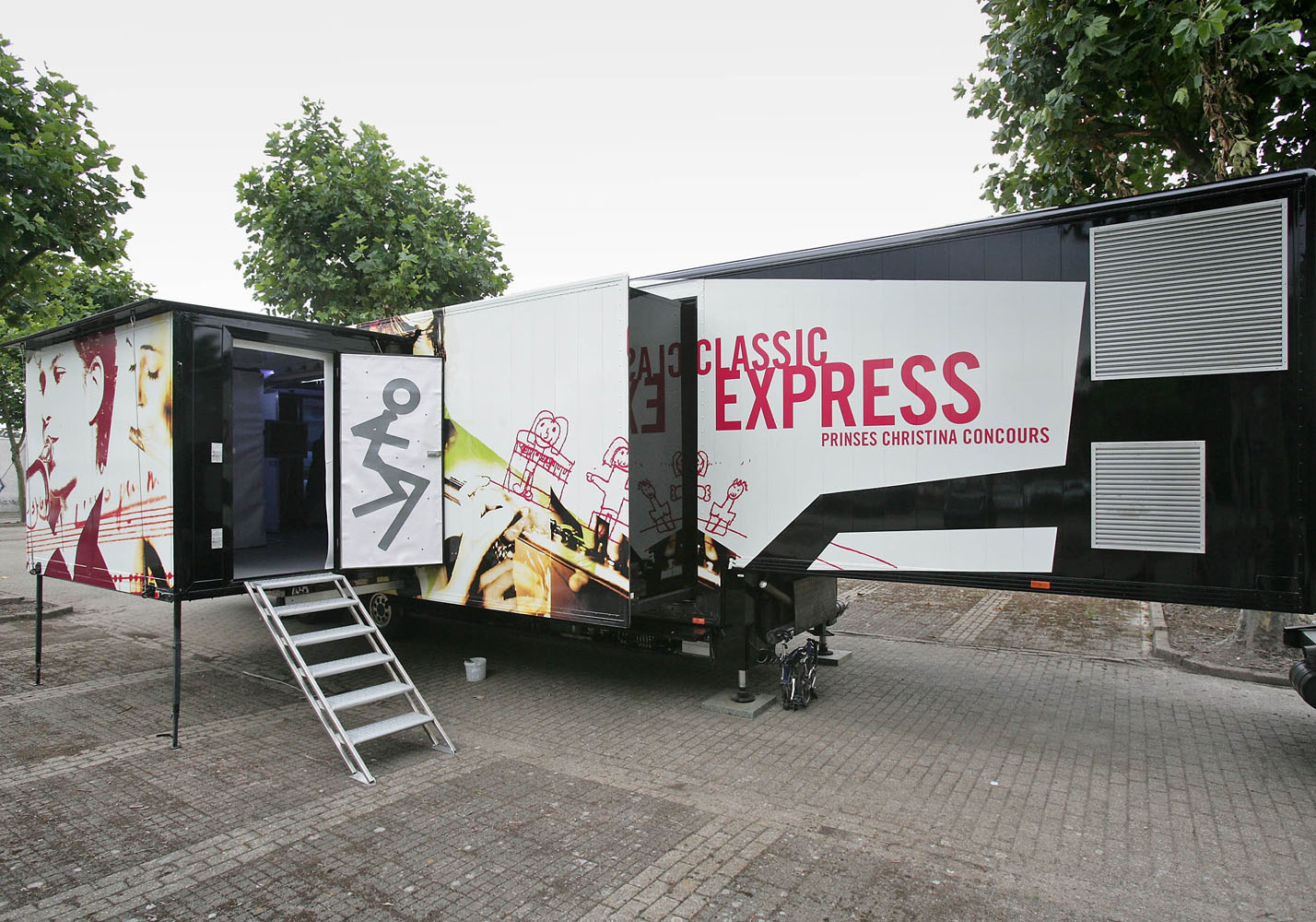 Der Classic Express ist eine Initiative des niederländischen Musik-Nachwuchswettbewerbs «Prinses Christina Concours». Seit 2007 fährt der 31 Tonnen schwere Sattelschlepper junge Musikerinnen und Musiker zu Primarschulen in den ganzen Niederlanden. Schon mehr als 50’000 Kinder konnten seit der Lancierung ein Konzert im Classic Express miterleben. Der Lastwagen ist ausfahrbar und wird zu einem Konzertsaal mit neuster Licht- und Tontechnik – ein schöner und heller Raum, in dem sich Kinder sofort wohl fühlen.