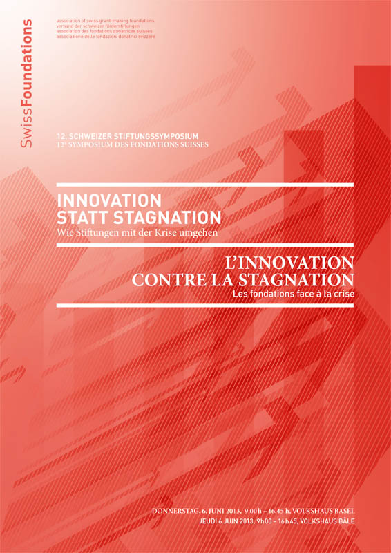 Das Schweizer Stiftungssymposium 2013 «Innovation statt Stagnation – Wie Stiftungen mit der Krise umgehen» stellt in zwei Plenarveranstaltungen und sechs Workshops aktuelle Herausforderungen und innovative Lösungsansätze aus der Praxis zur Diskussion, mit denen sich Stiftungen heute konfrontiert sehen. Neben Schweizer Beiträgen und Fallbeispielen bietet das Symposium einen Einblick in den Alltag europäischer Stiftungssektoren. Viel Raum wird neben den Beiträgen auch der kreativen Interaktion, Debatten und Ideenentwicklung eingeräumt.