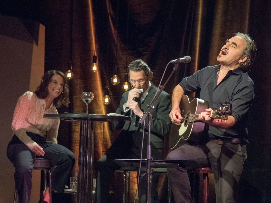 Bild: Mona Vetsch, Martin Suter, Stephan Eicher – Foto: © SRF