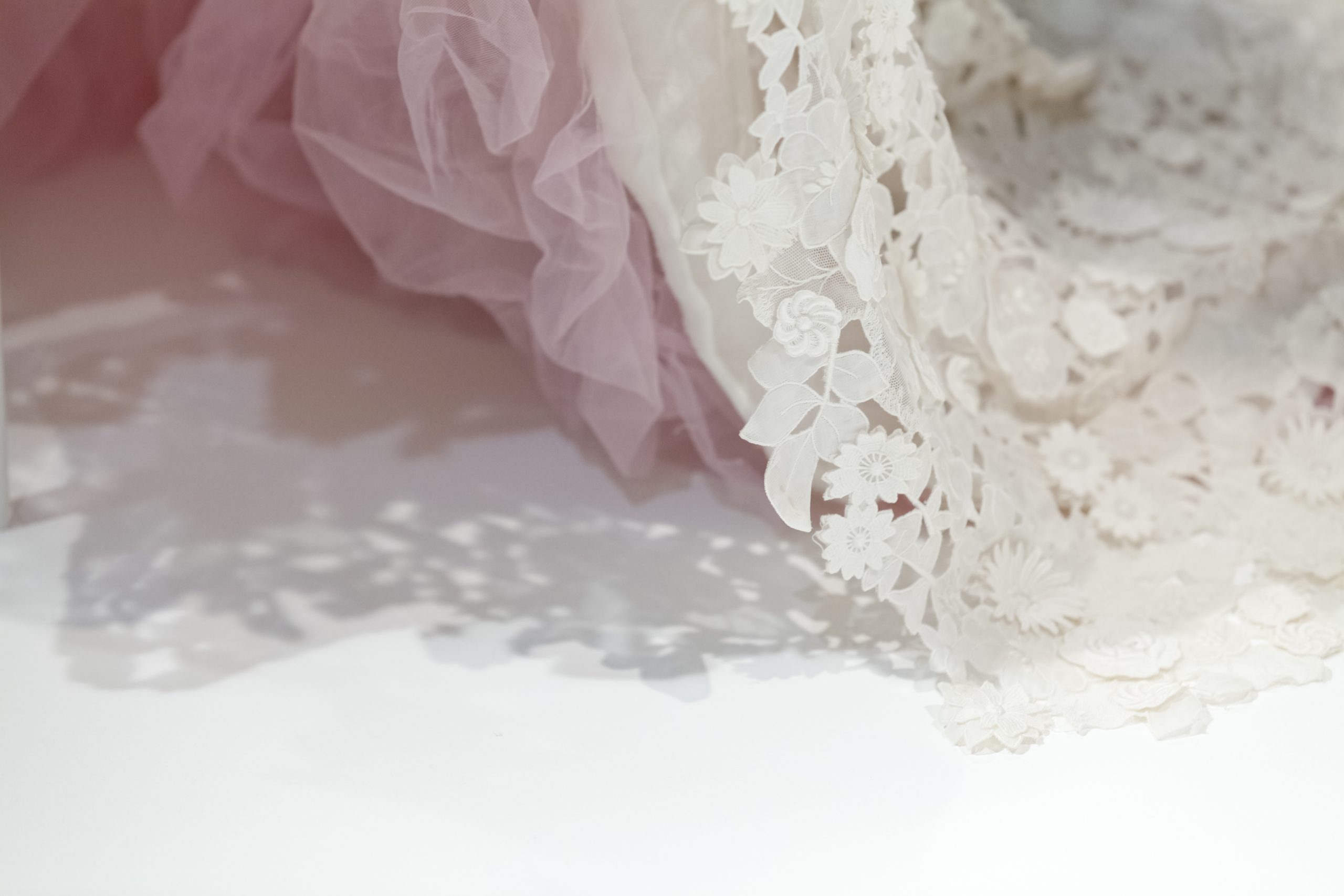 Neben Symbolgehalt, Status und Funktionalität spielen gestalterische Kriterien eine grosse Rolle. Das unbunte Weiss verfügt über eine besondere Ästhetik, die Material, Textur und Schnitt eines Kleidungsstücks hervorhebt, und die ModedesignerInnen bis heute inspiriert. Dies verdeutlichen die Stickerei-Kleider des St.Galler Modelabels Akris ebenso schön wie die Looks des Schweizers Yannik Zamboni (Maison Blanche). Aber auch der japanische Modedesigner Issey Miyake, der in der Ausstellung vertreten ist, spielt kongenial mit Licht und Schatten, um die dreidimensionalen Strukturen seines Entwurfes zu betonen.