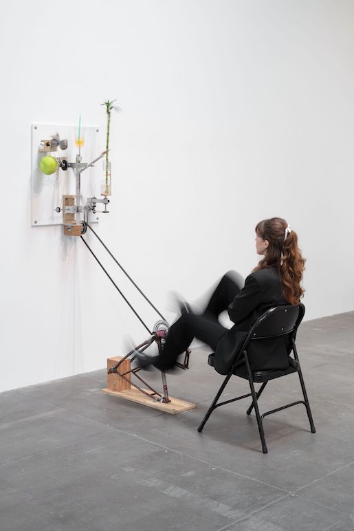 Bild: Mika Rottenberg, #11 with cabbage and ponytail (detail), 2020. Plywood, aluminum, mechanical parts, plastic, hair, crank element with belt. © Mika Rottenberg, Courtesy the artist and Hauser & Wirth – Photo: Zak Kelley