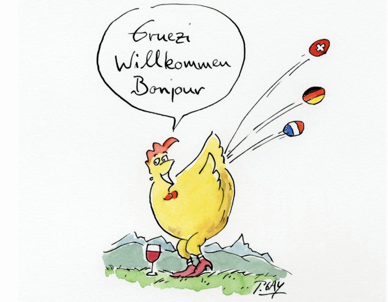 Der bekannte Cartoonist, Grafiker und Autor Peter Gaymann liess sich vom Dreiland zu neuen Cartoons, Zeichnungen und Objekten inspirieren. Dabei lässt er neben seinen bekannten Hühnern auch Schweine, Frauen, Männer, Kinder, Katzen, … über die Grenzen blicken und uns neben tierischen und menschlichen Abgründen ungeahnte Gemeinsamkeiten, Unterschiede, Klischees und andere Wahrheiten aus allen Lebensbereichen in Frankreich, in der Schweiz und in Deutschland entdecken.